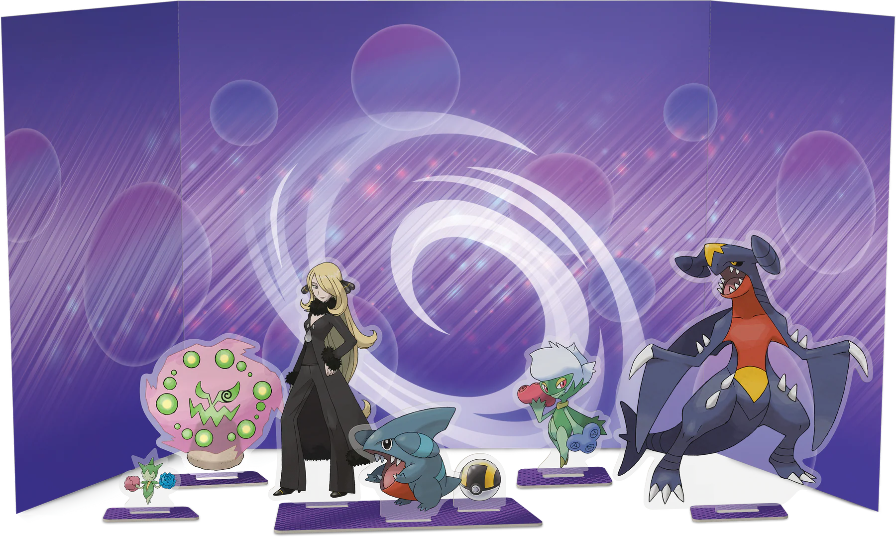 ¡Cynthia y Garchomp demuestran la fuerza de una Campeona! Cynthia, la Campeona de la región de Sinnoh, es una de las Entrenadoras Pokémon más poderosas del mundo, ¡y su Garchomp ha estado a su lado desde el principio! Descubre el poder de su amistad en esta colección con la carta promo holográfica de Garchomp ex de Cynthia, cuyos ataques causarán un daño devastador y te permitirán robar cartas. Además, adentro encontrarás cartas holográficas de Gible de Cynthia y Gabite de Cynthia, 1 calcomanía genial, 1 set de figuras con fondo y muchos más Pokémon en los sobres de refuerzo. Y las figuras acrílicas muestran a más Pokémon emblemáticos de Cynthia, ¡que también podrás encontrar en Escarlata y Púrpura-Rivales Predestinados!